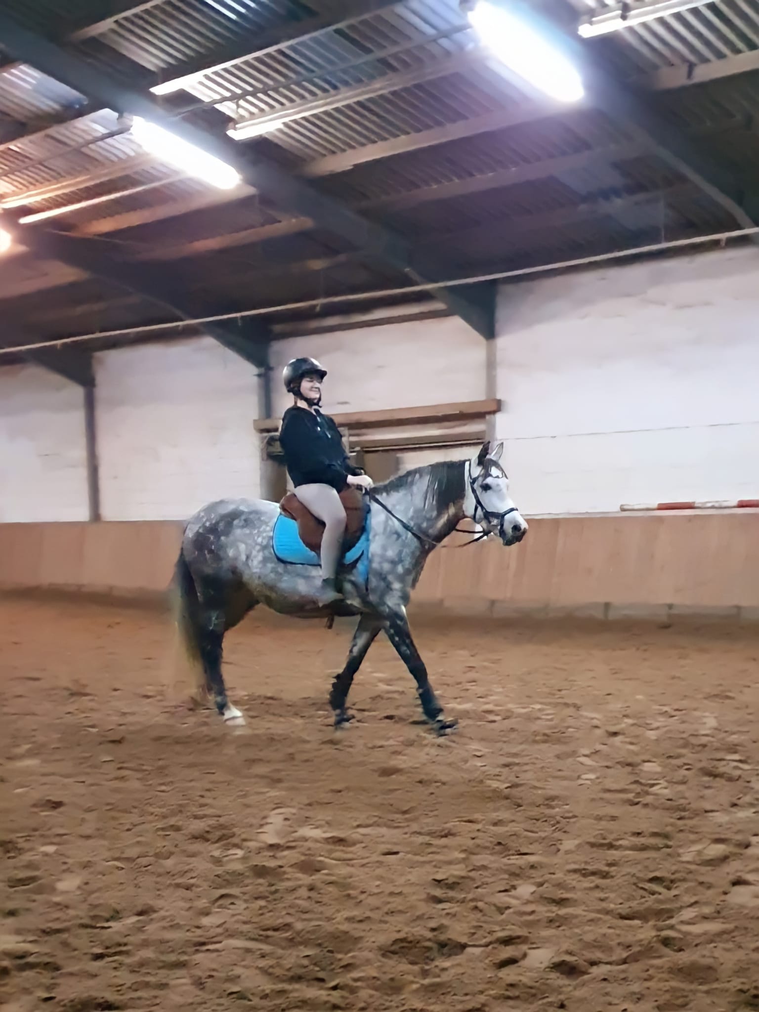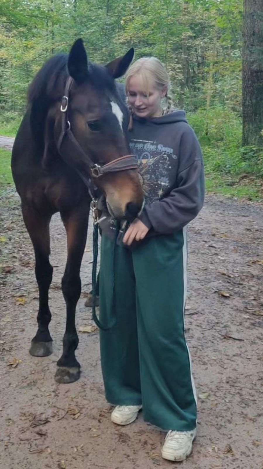 Lotta reitet seit dem sie 2 Jahre alt war. Auf ihrem Kindheitshof hat sie reiten gelernt und hat irgendwann angefangen Reitunterricht zu geben, bei der Ausbildung der Jungpferde mitzuwirken und die Stallarbeit zu machen. Sie hat ein Jahr in Namibia gelebt und auch dort diese Aufgaben gemacht. Ihr ist eine harmonische Bezuiehung zwischen Pferd und Mensch sehr wichtig.